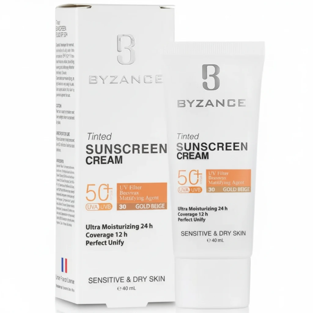 کرم ضد آفتاب +SPF50 بیزانس مناسب پوست خشک و حساس | بژ طلایی