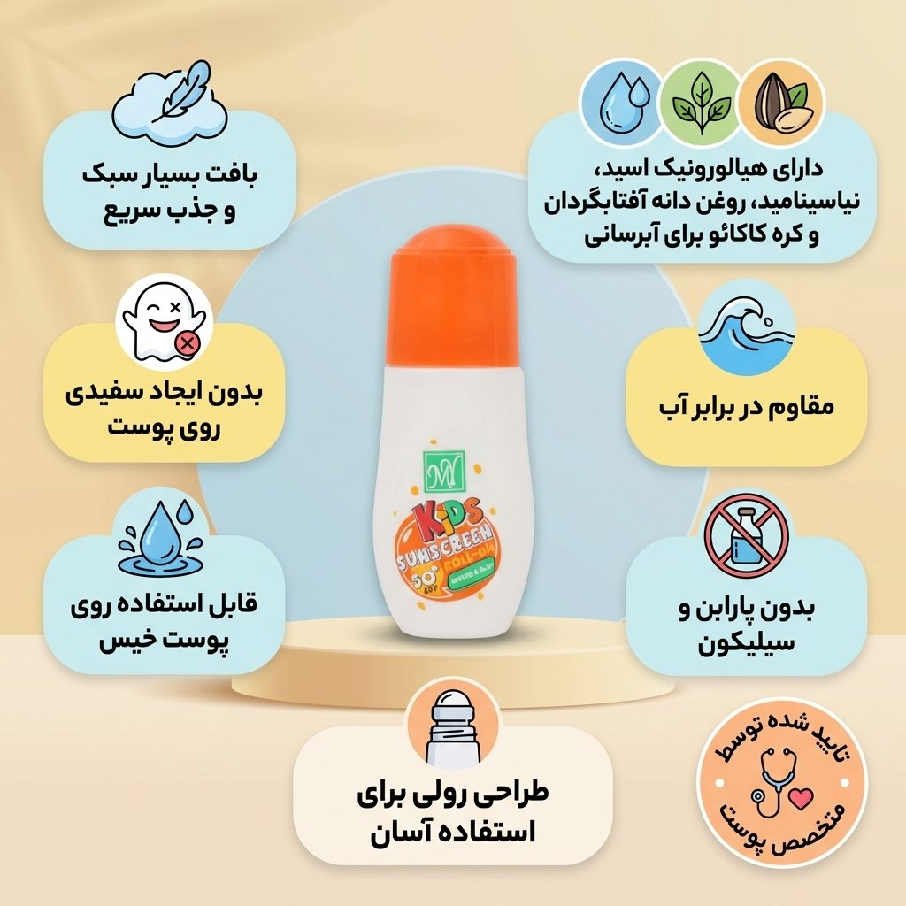 برای محافظت از این پوستهای لطیف، انتخاب یک محصول مناسب حیاتی است. لوسیون رولآن ضدآفتاب کودکان مای با 50 SPF ، یک محافظت کامل را برای دلبندتان به ارمغان میآورد. این ضد افتاب به شکل رول طراحی شده که استفاده از آن را برای شما و کودکتان بسیار راحت میکند.