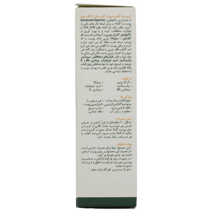 این ضد افتاب با بهرهگیری از تکنولوژی Advanced Spectral، یک سد دفاعی محکم در برابر اشعههای مخرب UVA، UVB و حتی بلولایت میسازد. همچنین ترکیبات کنترلکننده چربی در این محصول، از برق افتادن پوست جلوگیری کرده و ظاهری کاملا مات و یکدست به صورت شما میبخشند.